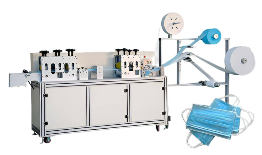 Автоматическая машина для производства медицинских масок из спанбонда посредством ультразвуковой сварки.