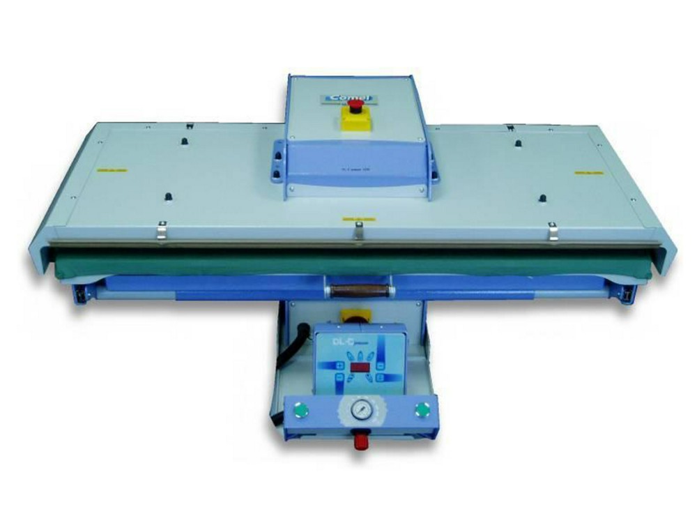 Универсальный однопозиционный пресс прямоугольной формы с электронагревом верхней подушки, пневматическим механизмом закрытия/открытия и электронным управлением.
