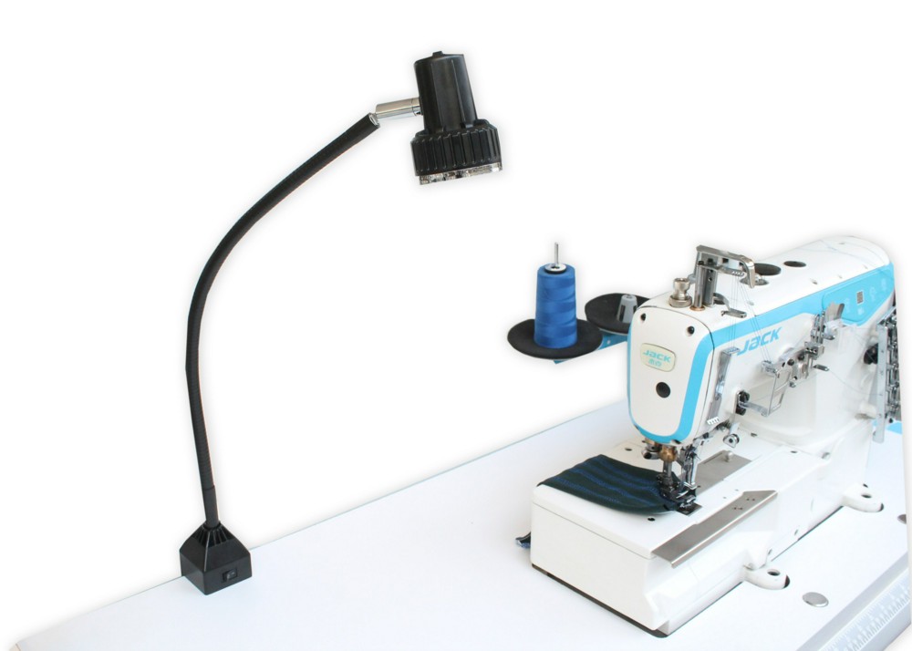 Светодиодный светильник на гибкой ножке с 28 светодиодами для любого типа швейных машин. Обеспечивает равномерное и большое поле освещения. Крепится к столешнице на струбцину. Подключается к розетке сети электропитания. Имеются две кнопки включения и выключения питания на струбцине и плафоне.