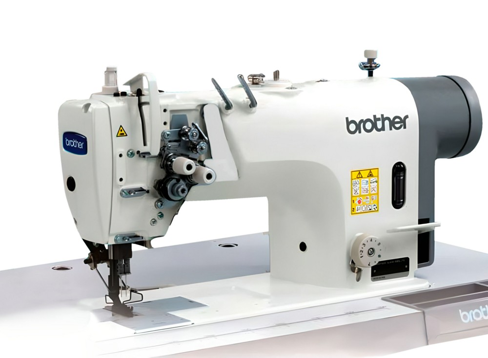 Двухигольная прямострочная машина челночного стежка с игольным и нижним продвижением материалов, с встроенным серводвигателем, без отключения игл
