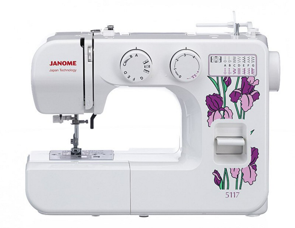 Электромеханическая швейная машина Janome 5117 — модель с горизонтальным челноком и встроенным нитевдевателем, которая выполняет все основные швейные операции, включая оверлочные, трикотажные, потайные, декоративные строчки и петлю-полуавтомат. На Janome 5117 вы без проблем будете шить как тонкие ткани, так и джинсу в несколько сложений. Есть возможность работать с узкими деталями благодаря съемному рукаву. С рычагом обратного хода легко штопать и делать закрепки в конце строчек. Является прекрасным сочетание яркого дизайна и оптимального функционала. Janome 5117 — настоящая находка для тех, кто ценит надежность и комфорт по доступной цене.