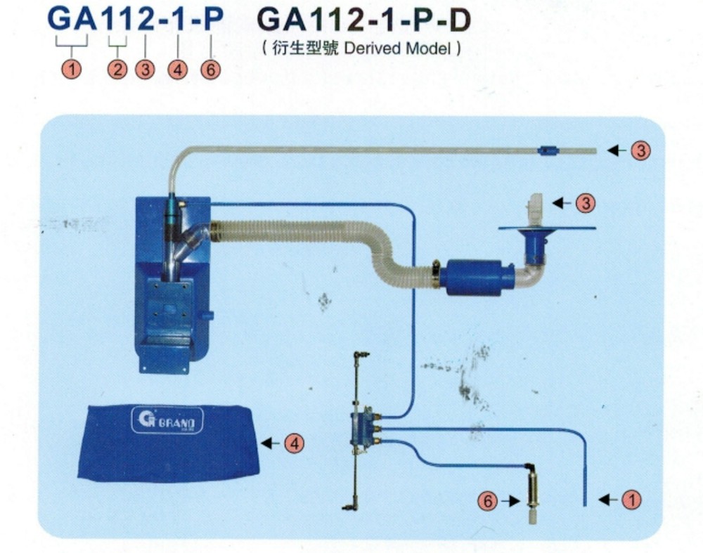 "Grand" GA 112-1-P-D-F Пневматическое устр. всасыван.остатков цепочек ниток,пыли,обрези подъем(ут)