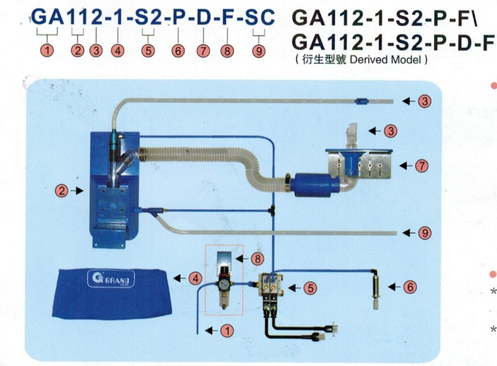 "Grand" GA 112-1-P-F Пневматическое устройство всасывания цепочек ниток,пыли,обрези подъем(не ут.ст)