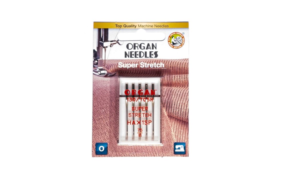 Кончик у игл Organ Супер стрейч среднезакругленный. Их используют для шитья высокоэластичных трикотажных изделий, симплекса, латекса, лайкры, ацетата и т.д.