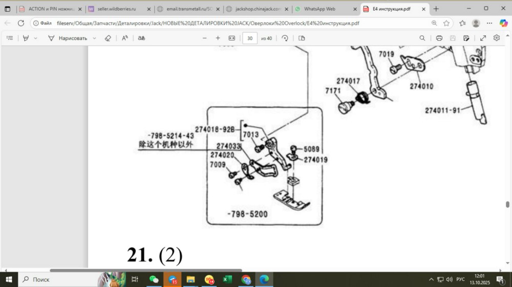 Держатель лапки на оверлок класса Jack 798.