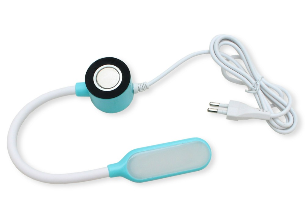 Лампа Jack с креплением на магните в бело-голубом исполнении. На корпусе предусмотрена сенсорная кнопка включения/выключения питания, с помощью которой также можно плавно регулироровать яркость освещения. Лампа имеет гибкую ножку, благодаря чему можно регулировать угол наклона и поворота на 360°.