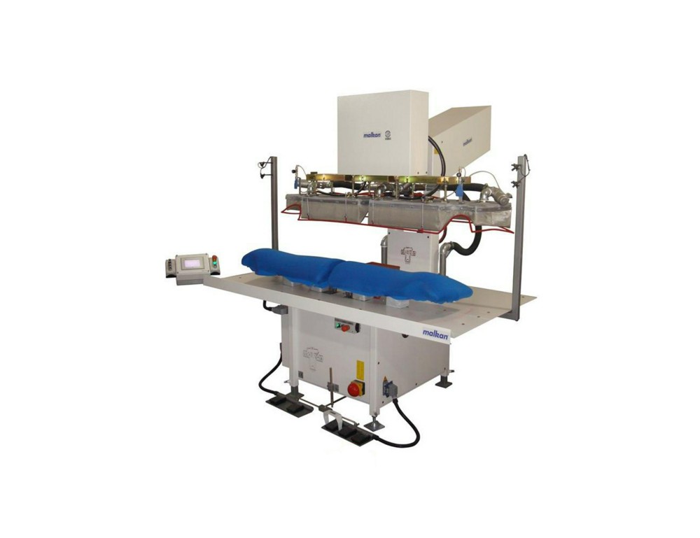 Двухпозиционный пневматический пресс с паровым нагревом верхней и нижней подушек, вакуумным отсосом и электронным управлением Применение: формование спинки мужского пиджака