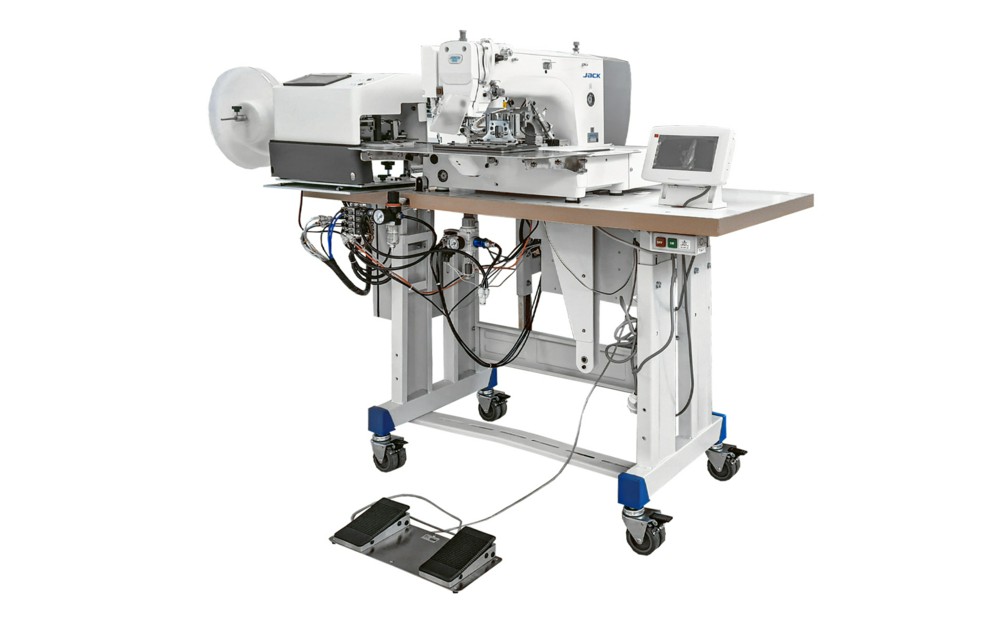 Одноигольная машина-автомат челночного стежка программируемой строчки с электронным управлением и устройством подачи и нарезания в размер текстильной застежки.