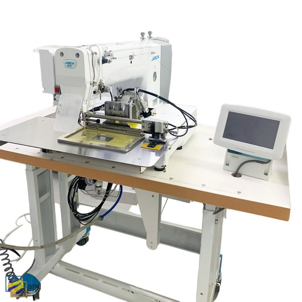 Одноигольная машина-автомат челночного стежка программируемой строчки с электронным управлением. Применение: Настрачивание эмблем, логотипов, декоративных элементов, текстильной застежки («велкро»), выполнение фигурной закрепки по программируемому контуру (область шитья X:220 хY:100 мм) в изделиях из различных материалов Преимущества: Полноценная операционная система с возможностью загрузки параметров пошива с внешнего носителя без необходимости перезапуска машины Большой жидкокристаллический дисплей повышает удобство управления Автоматическая обрезка нити и подъем прижимной планки Энергоэффективный серводвигатель обеспечивает низкий уровень вибрации и шума. Полусухая голова предотвращает образование пятен от протекания масла с игловодителя