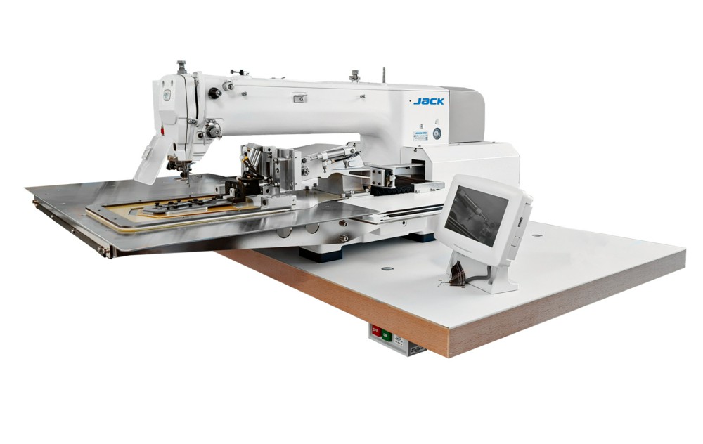 Одноигольная машина-автомат челночного стежка программируемой строчки с электронным управлением с устройством настрачивания накладного кармана.