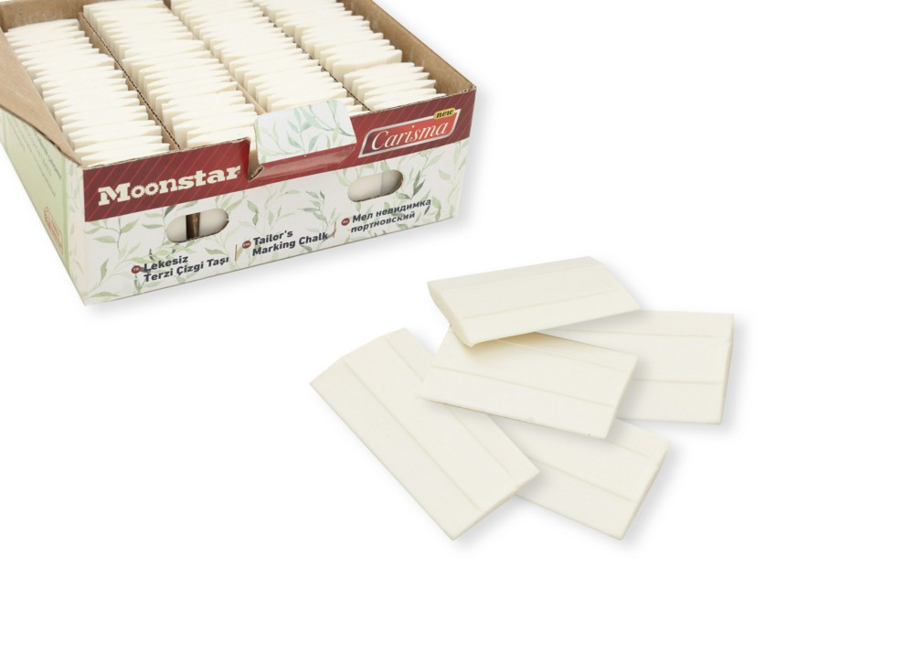 Мел мыльный портновский, белый, исчезающий, средней мягкости. Каждая пластина имеет тонкие края по продольным сторонам, что позволяет наносить тонкие, четкие линии.