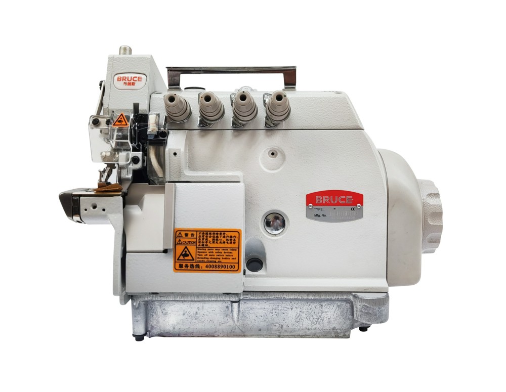 Четырехниточная двухигольная стачивающе-обметочная машина цепного стежка (4-х ниточный оверлок) с рукавной платформой и встроенным серводвигателем.