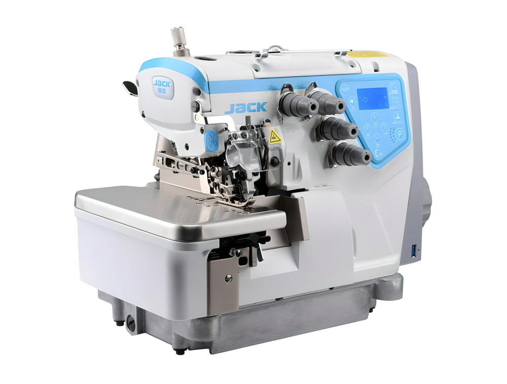 Высокоскоростная пятиниточная двухигольная стачивающе-обметочная машина цепного стежка (5-ти ниточный оверлок) с электронным управлением и автоматическими функциями