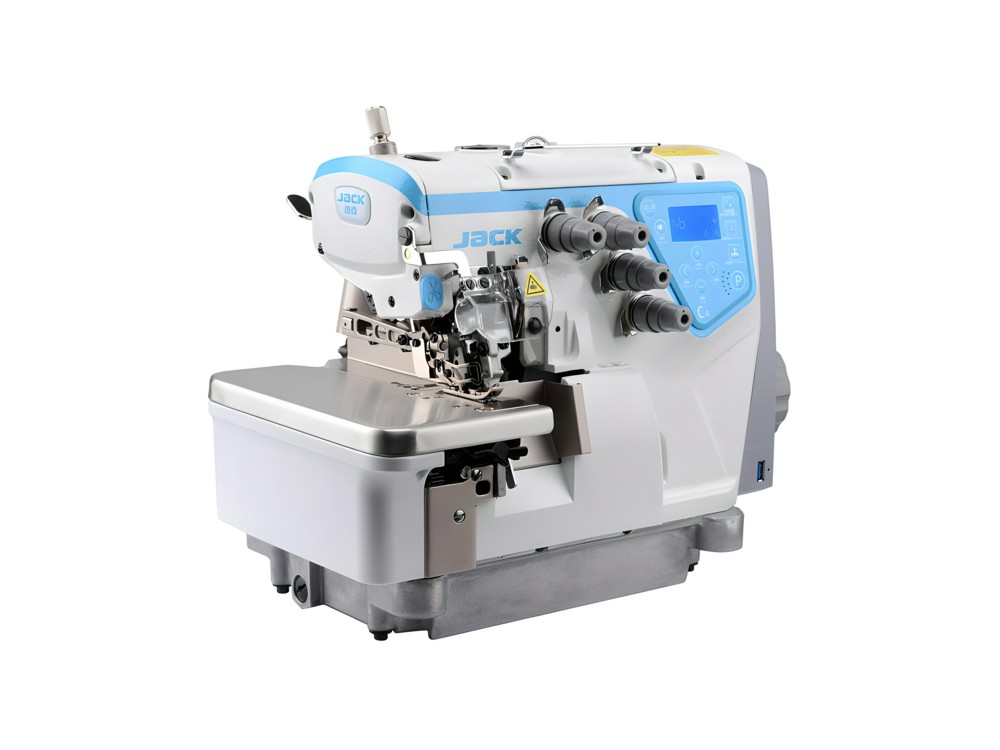 Высокоскоростная пятиниточная двухигольная стачивающе-обметочная машина цепного стежка (5-ти ниточный оверлок) с электронным управлением и автоматическими функциями