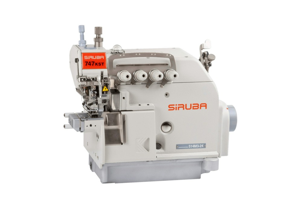 Четырехниточная двухигольная стачивающе-обметочная машина цепного стежка (4-х ниточный оверлок) с цилиндрической платформой и верхним продвижением ткани