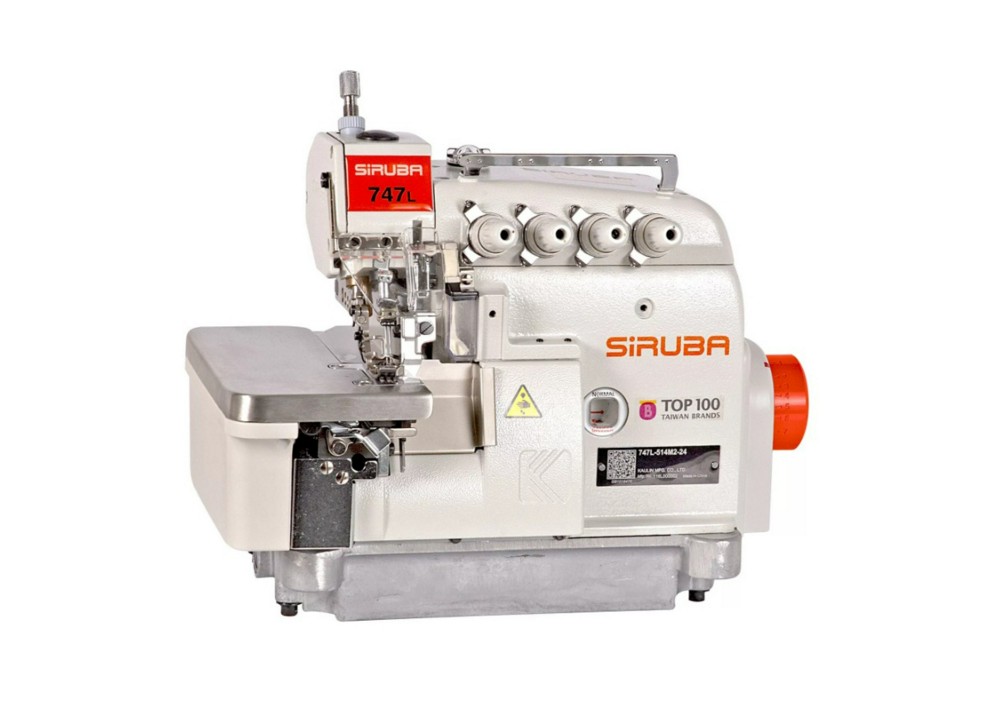Высокоскоростная шестиниточная трехигольная стачивающе-обметочная машина цепного стежка (6-ти ниточный оверлок) с встроенным серводвигателем.