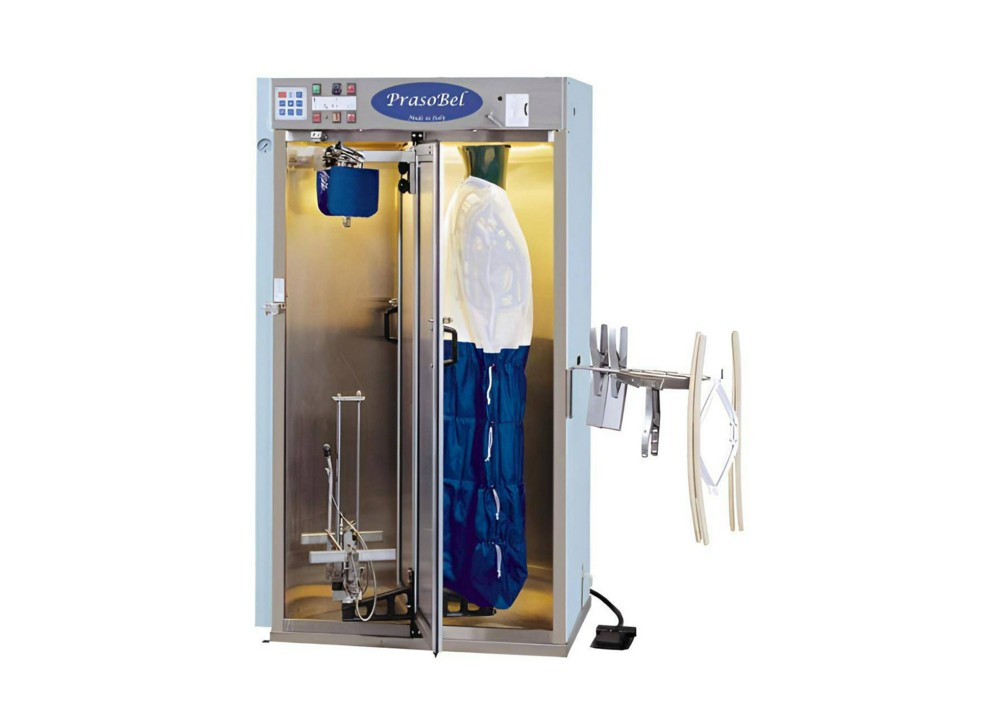 Преимущества: Существует возможность вмонтирования двух форм для внешней одежды или двух форм для глаженья брюк. Электронный компьютер на 10 программ Автоматические циклы глаженья управляемые при помощи микропроцессора. Глаженье при помощи формы для внешней одежды -брюки, гетры и т п. на растяжимой форме для брюк.