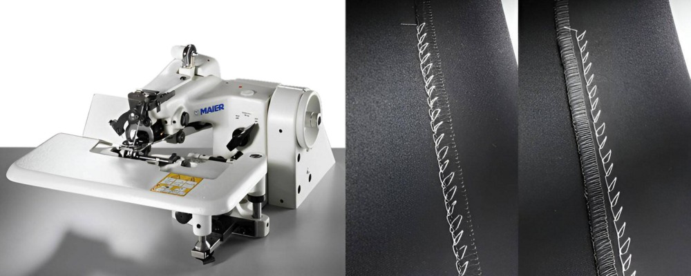 Подшивание подогнутых срезов деталей изделий из различных по свойствам материалов (легких, средних по толщине, тяжелых)