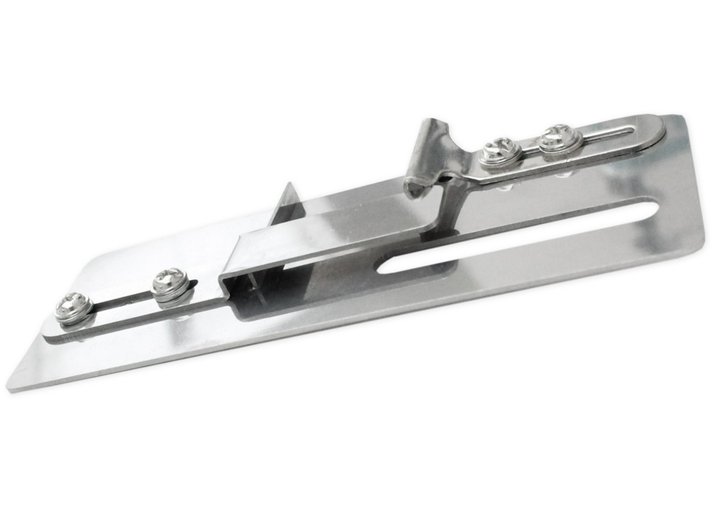 Приспособление KHF46 (регулируемое), с Т-образной направляющей, предназначено для обработки края швом вподгибку с открытым срезом (снизу). Используется на промышленных распошивальных машинах.