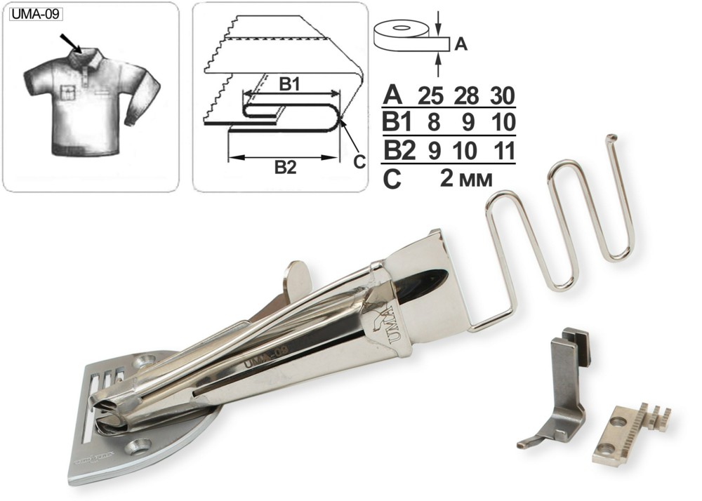 Приспособление UMA-09 для окантовывания бейкой в три сложения с направителем (закрытый срез сверху).