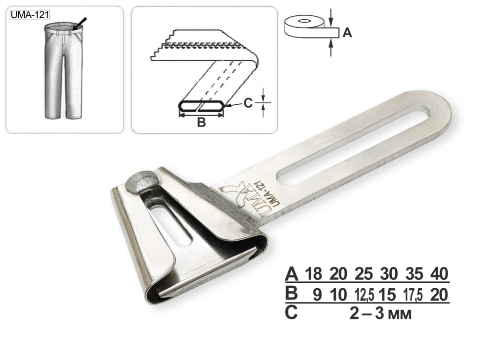 Приспособление UMA-121 25-12,5 мм M предназначено для изготовления шлевок на шлевочных машинах.
