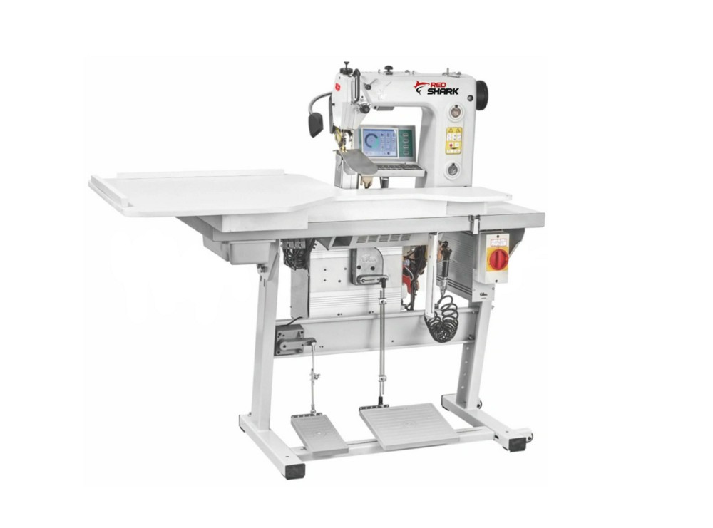 Компьютеризированная машина челночного стежка с дифференцируемой верхней и нижней подачей с электронным управлением, встроенным серводвигателем для втачивания рукавов.