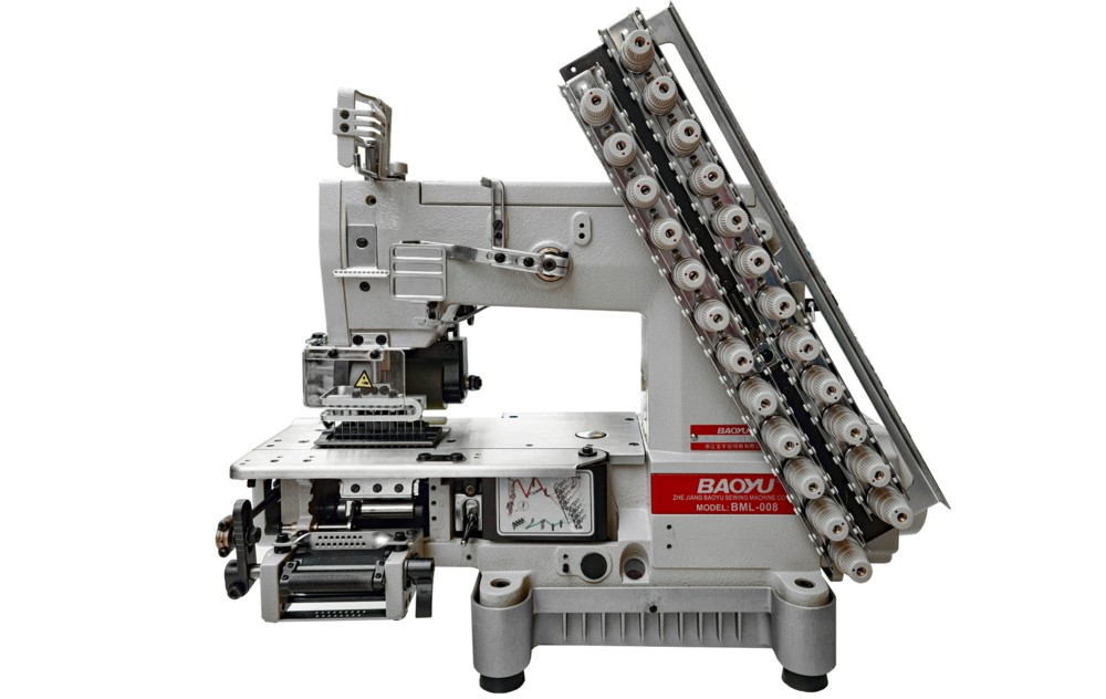 Двенадцатиигольная машина цепного стежка с встроенным серводвигателем, блоком управления и пуллерами для равномерной подачи резинки