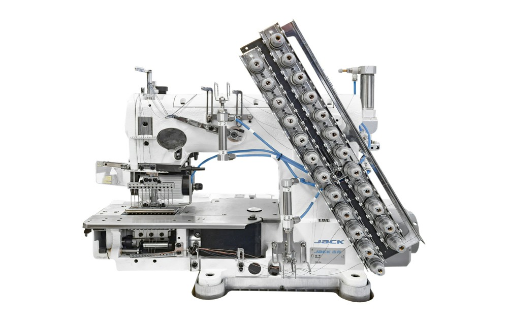 Двенадцатиигольная машина цепного стежка с электронным управлением, с встроенным серводвигателем, с автоматическими функциями и задним зубчатым натяжителем эластичной тесьмы