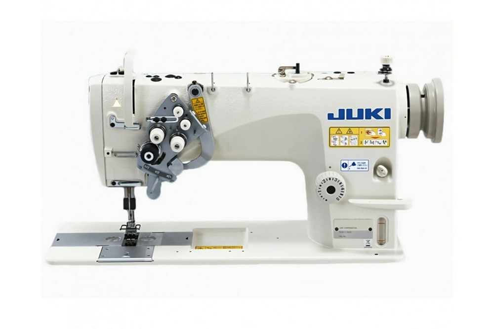 Двухигольная прямострочная машина челночного стежка с нижним и игольным продвижением материалов.