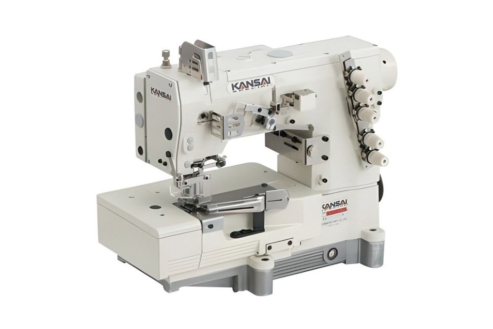 Трехигольная высокоскоростная плоскошовная машина с верхним и нижним застилом с плоской платформой, для обработки подзора кармана