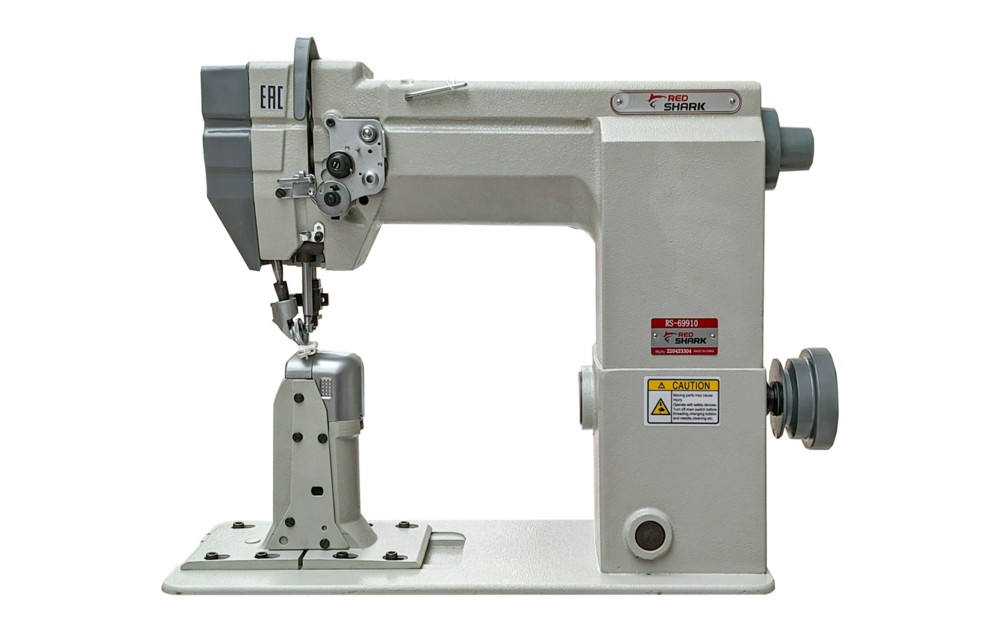 Одноигольная колонковая машина с игольным продвижением, с колесной подачей и прижимным ведущим роликом.