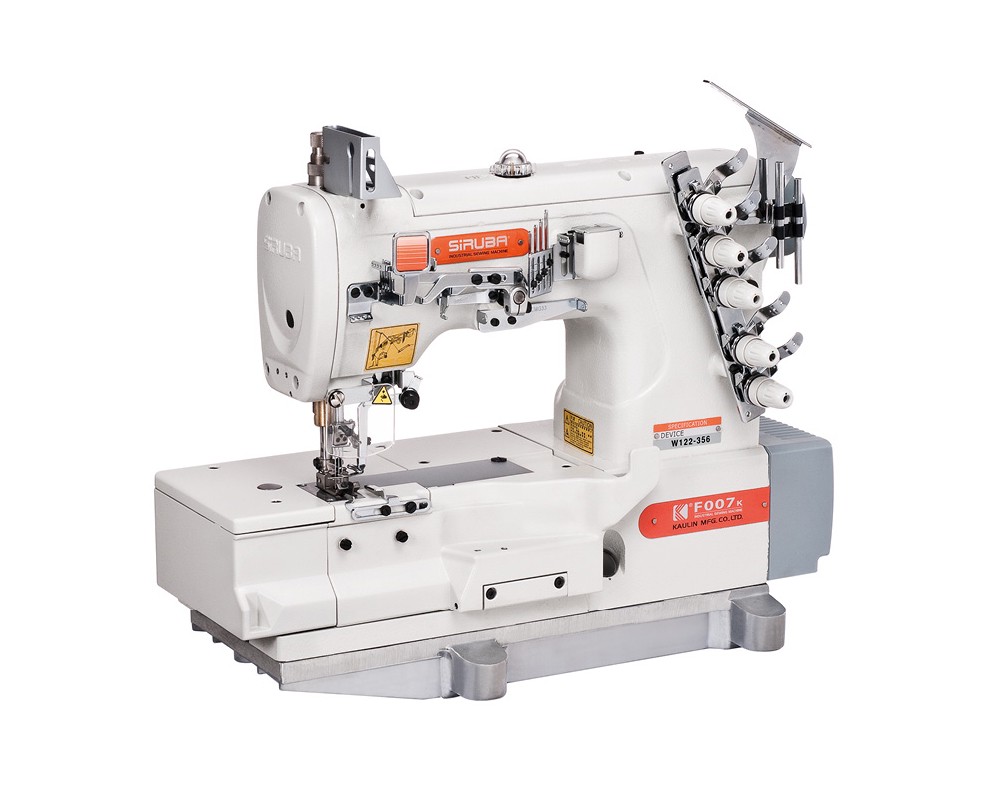 3-игольная 5-ниточная плоскошовная (распошивальная) машина цепного стежка с плоской платформой, верхним и нижним застилом, встроенным серводвигателем с прямым приводом и приспособлением для подгибки среза