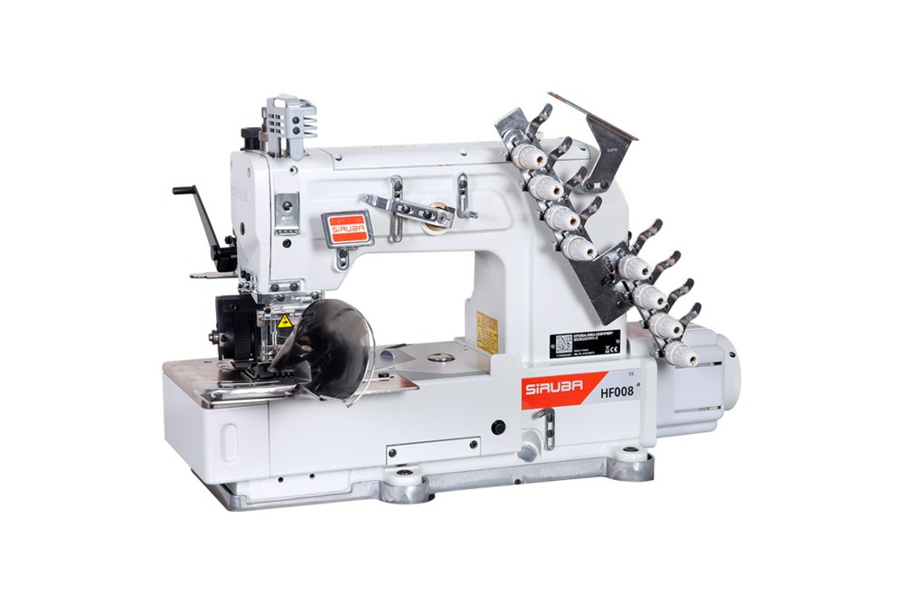 Четырех(шести-) игольная восьминиточная машина цепного стежка с плоской платформой, встроенным серводвигателем с прямым приводом, дополнительным игольным продвижением, задним пуллером, направителем детали, устройством пропуска стежков