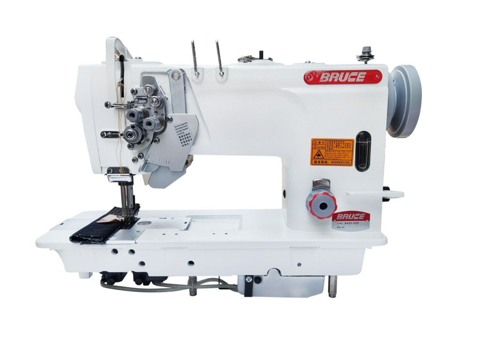 Двухигольная машина челночного стежка с двойным продвижением материала (игла и нижняя рейка), с отключением игл, встроенным серводвигателем с прямым приводом.