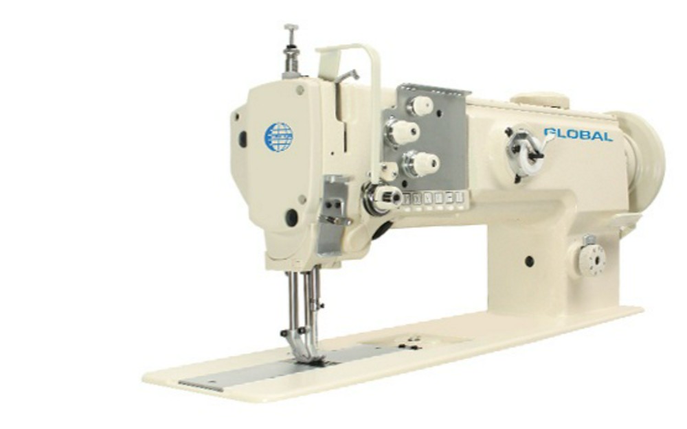 Двухигольная машина челночного стежка для тяжелых материалов с унисонным продвижением и увеличенными челноками вертикального типа. Регулируемое верхнее продвижение. Увеличенное подрукавное пространство(33 см). Автоматические функции: обрезка нитей, закрепка, подъем лапы.