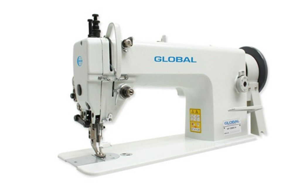 Одноигольная машина челночного стежка для средних и тяжелых материалов с верхним транспортером с увеличенным челноком.