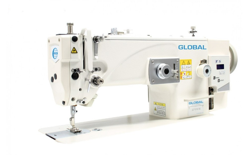 Одноигольная машина челночного стежка двухпрокольной зигзагообразной строчки с нижним продвижением с плоской платформой для среднетяжелых материалов. Прямой привод.