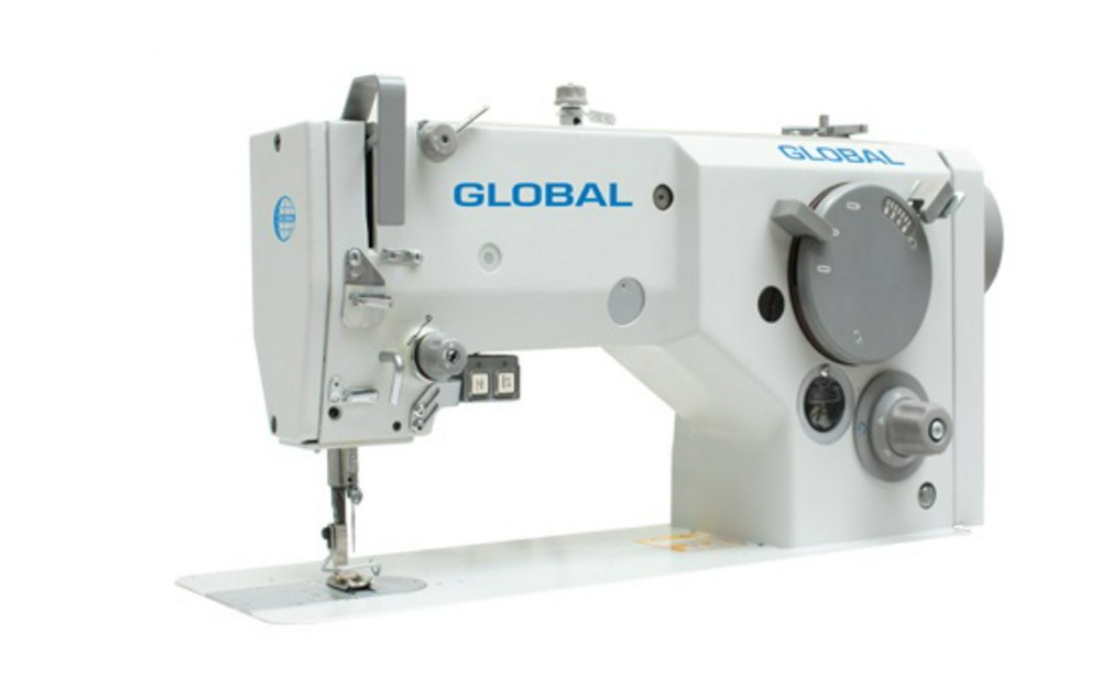 Одноигольная высокоскоростная машина челночного стежка двухпрокольной зигзагообразной строчки с нижним продвижением с плоской платформой для среднетяжелых материалов. Увеличенный челнок.