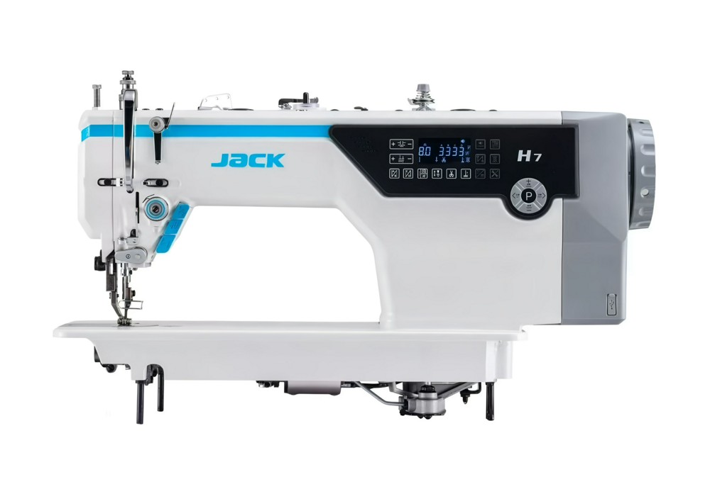 Одноигольная машина челночного стежка с плоской платформой, верхним (лапка-перетоп) и нижним продвижением, встроенным серводвигателем и электронным управлением.