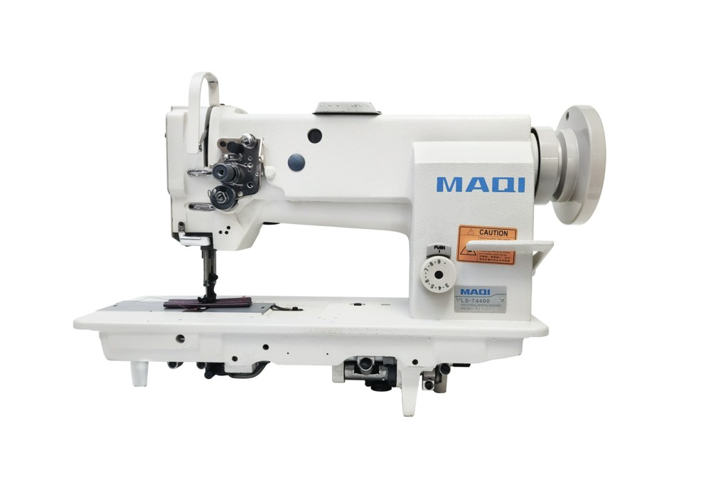 Одноигольная прямострочная машина челночного стежка с тройным (унисонным) продвижением, плоской платформой, увеличенным горизонтально расположенным челноком.