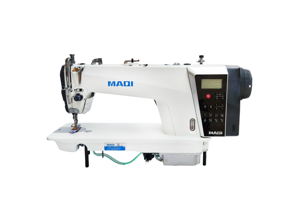 Одноигольная машина челночного стежка с плоской платформой, нижним транспортером, встроенным серводвигателем с прямым приводом, автоматическими функциями и электронным управлением.