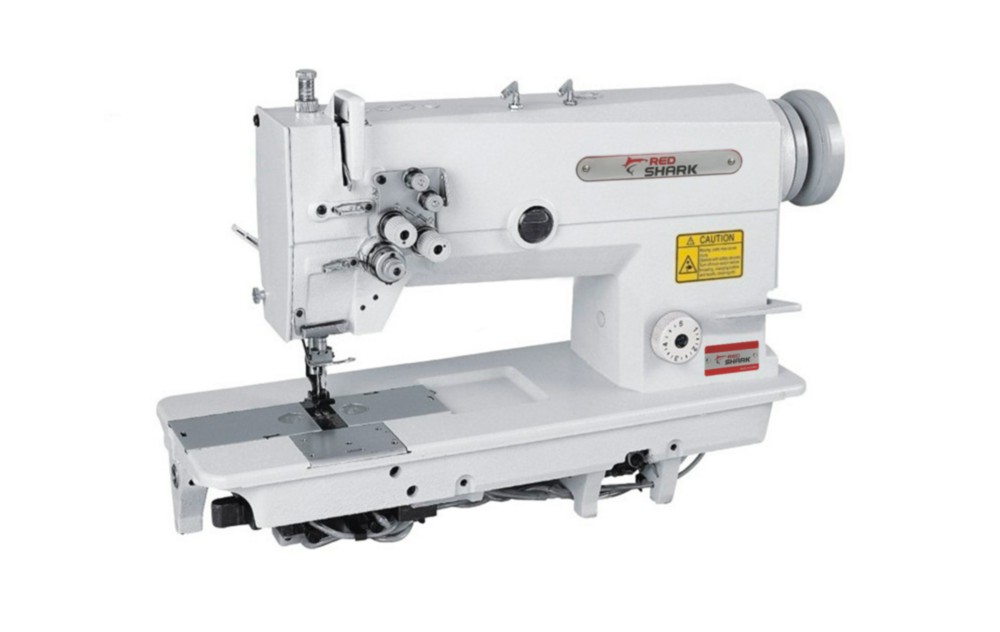 Двухигольная прямострочная машина челночного стежка с игольным и нижним продвижением материалов, с увеличенными челноками, с отключением игл