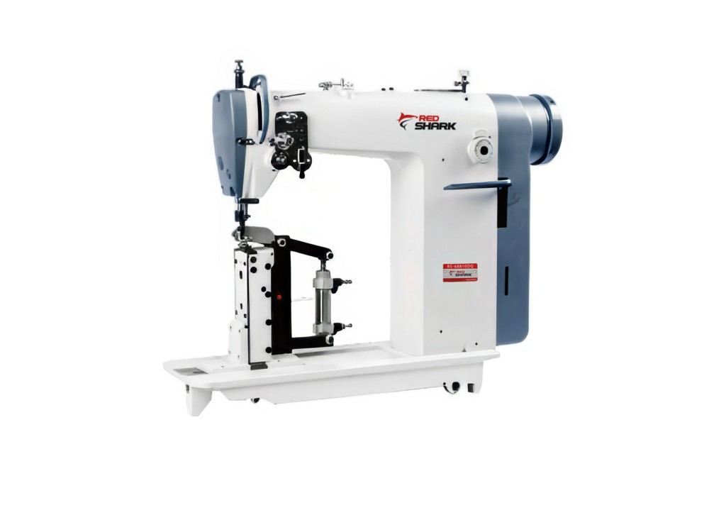 Одноигольная машина челночного стежка с колонковой платформой, устройством подачи и пневмоустройством обрезки тесьмы