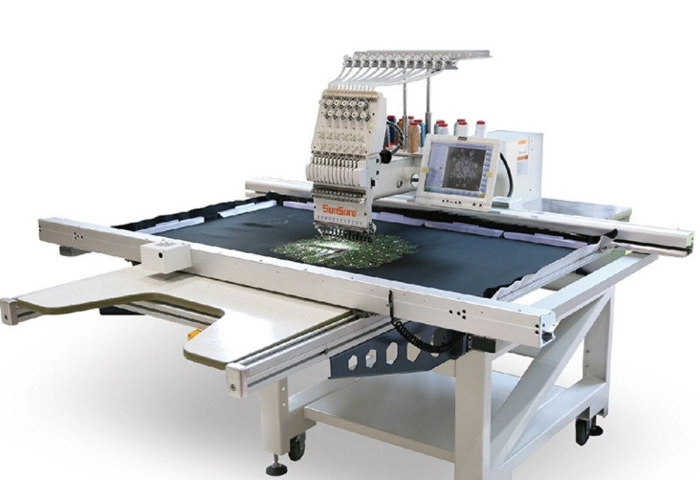 Вышивальная одноголовочная машина, 12 игл (цветов). Выполняет вышивку высокого класса на различных видах материалов, включая кожу. Благодаря увеличенному рабочему полю 700х1200 мм способна вышивать крупные дизайны без перезапяливания и состыковки. Специализация - промышленная вышивка на готовых изделиях, элементах кроя. При необходимости машина может поставляться в комплекте с устройствами для пришивания пайеток, шнура, ришелье.