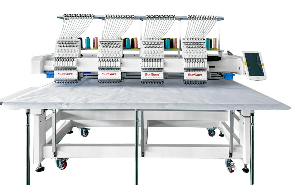 Вышивальная четырехголовочная машина, 12 игл (цветов). Выполняет вышивку высокого класса на различных видах материалов, включая кожу. Благодаря большому полю вышивки эти машины идеально подходят для массового выпуска шевронов, а также крупных вышивок (постельное белье, церковное облачение и т.д.). Вышивка производится как в пяльцах различного размера, так и в единой вышивальной раме. Специализация - промышленная вышивка на готовых изделиях, полотне ткани и головных уборах.